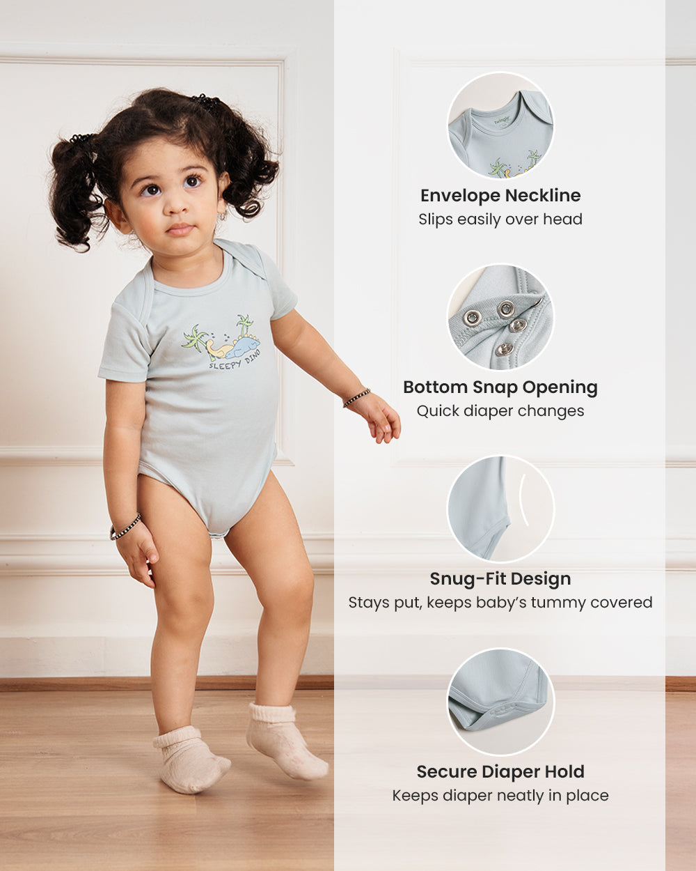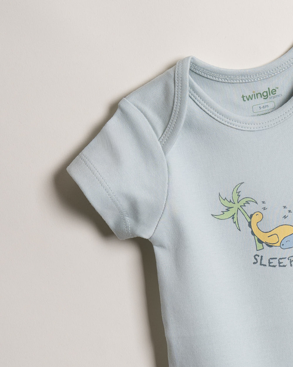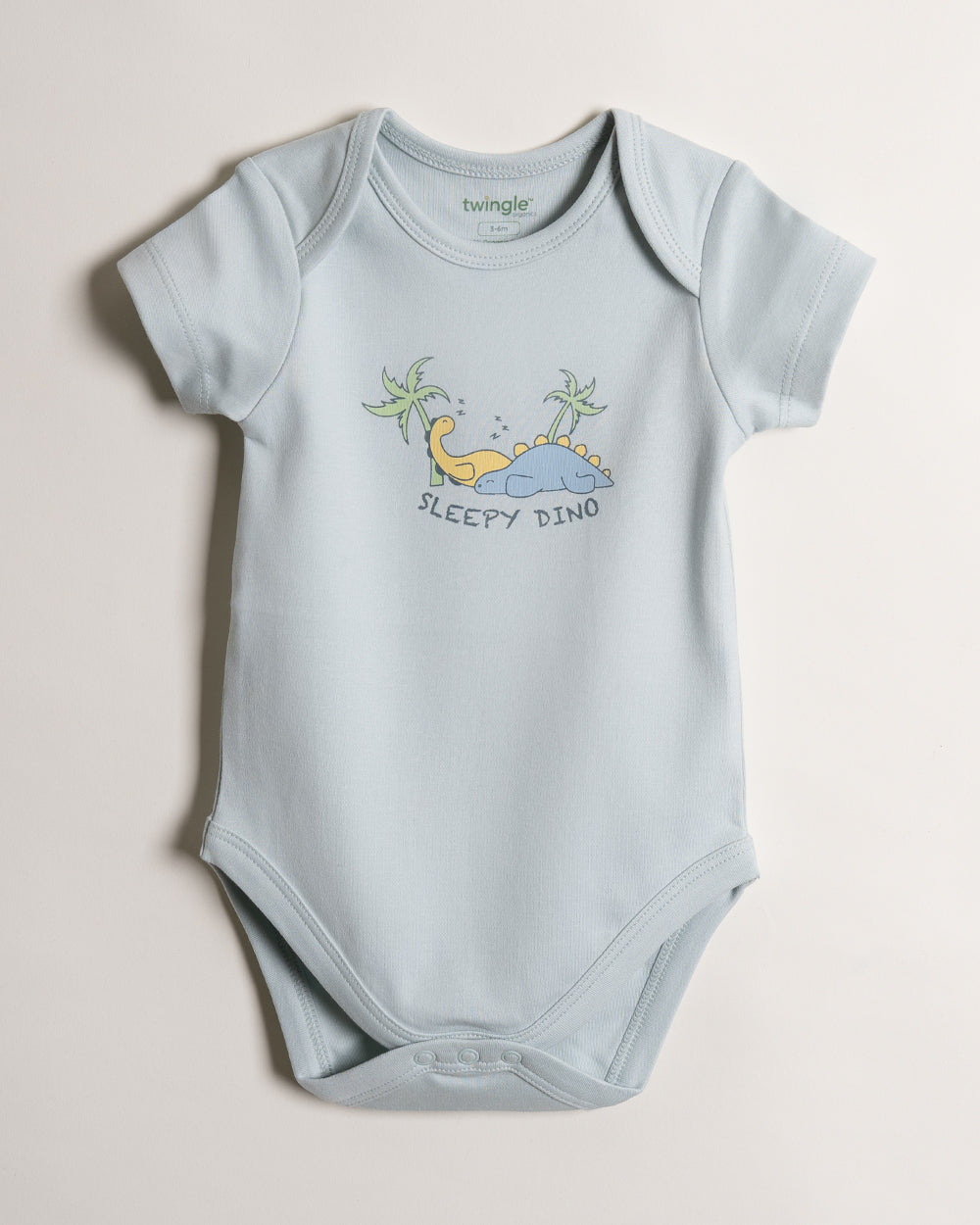 Twingle 100% Organic Cotton Baby Bodysuit-Short Sleeves-Nickel Free Snaps-Light Blue-Solid-For Infants