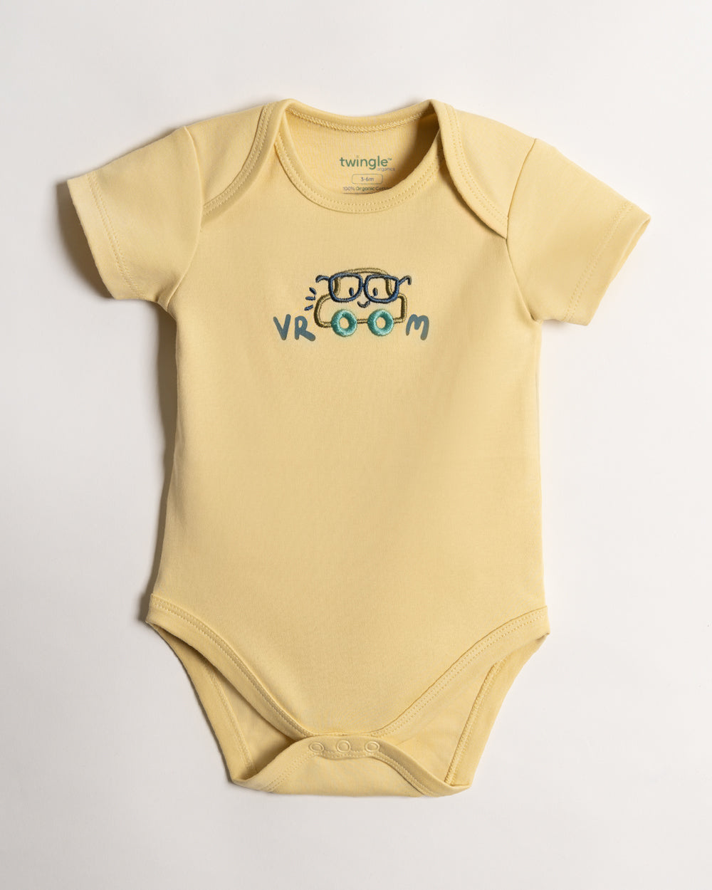 Twingle 100% Organic Cotton Baby Bodysuit-Short Sleeves-Nickel Free Snaps-Yellow-Solid-For Infants
