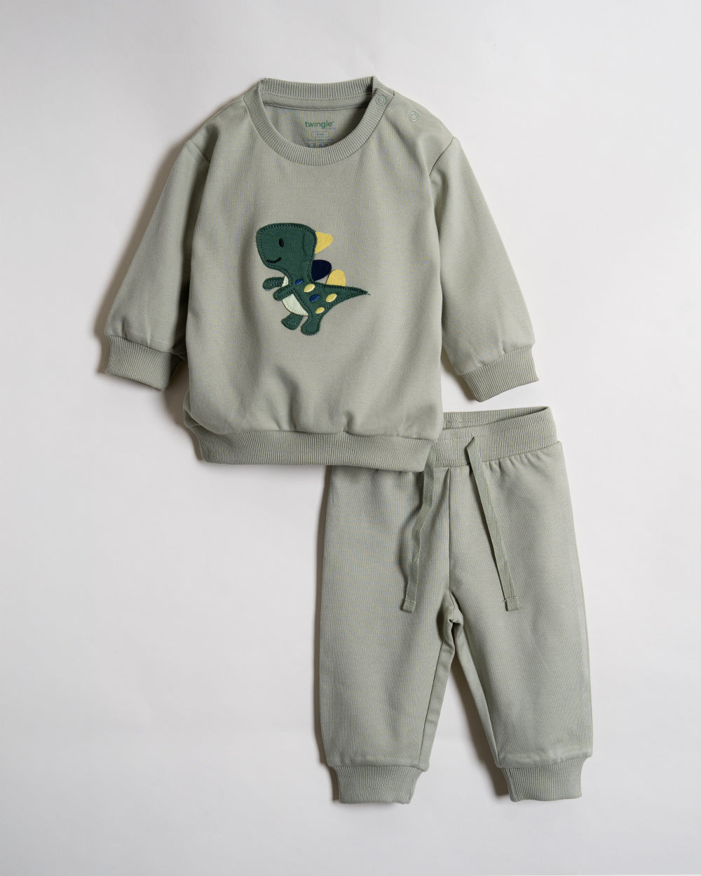 Twingle 100% Organic Cotton Sweatshirt & Joggers Set-Adjustable Waistband-Tag-Free Design-Sage Green-Solid-For Infants