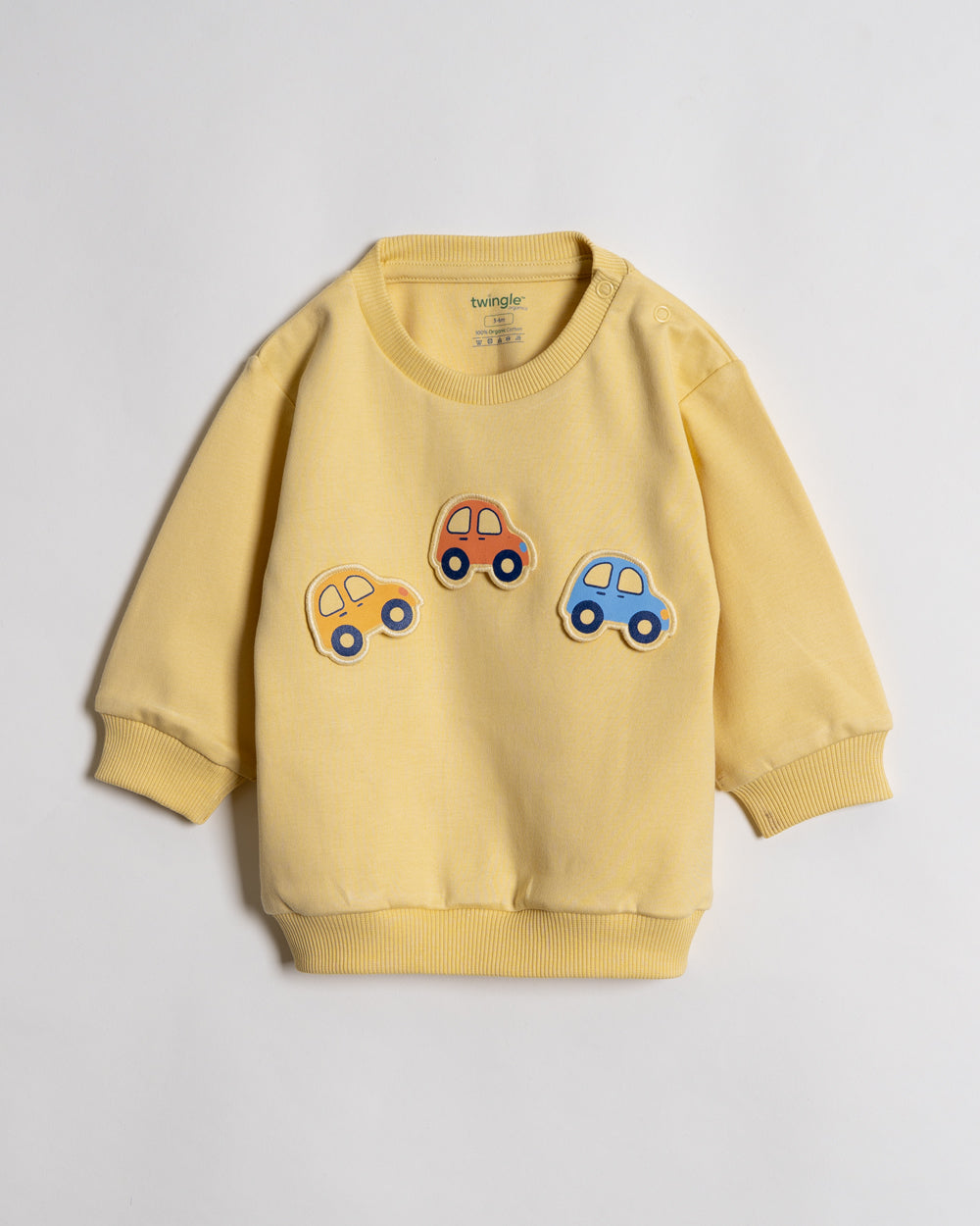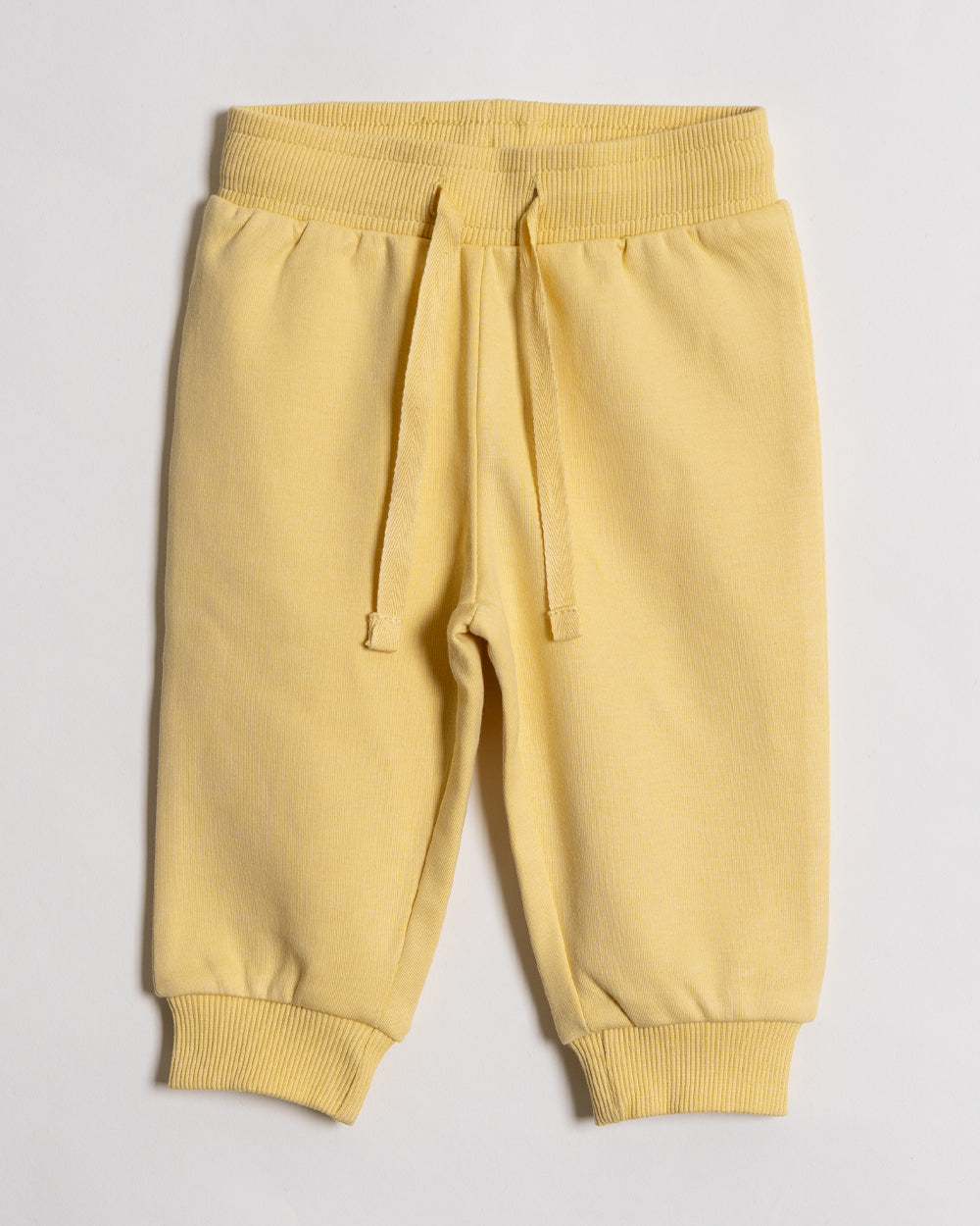 Twingle 100% Organic Cotton Sweatshirt & Joggers Set-Adjustable Waistband-Tag-Free Design-Yellow-Solid-For Infants
