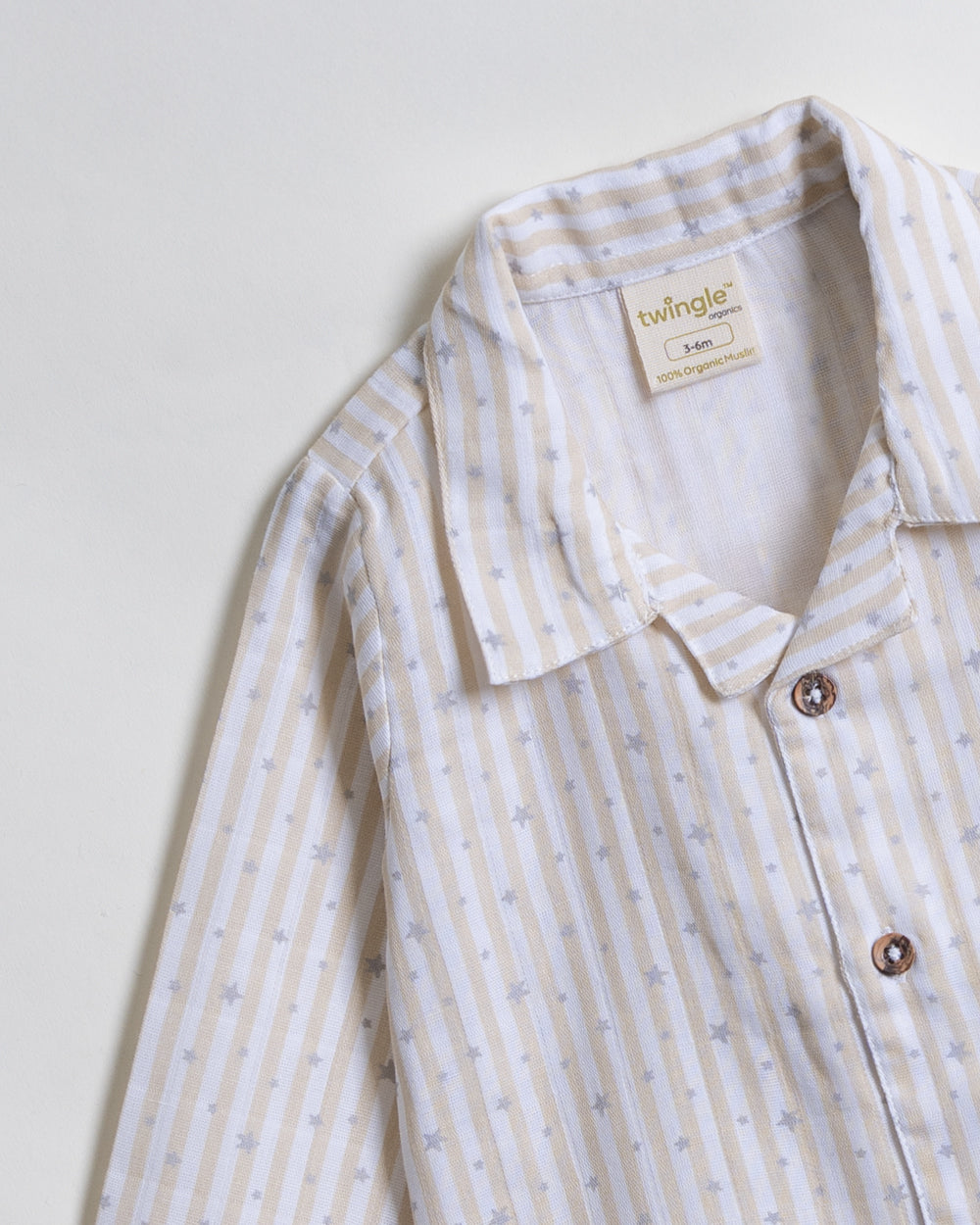 Twingle 100% Organic Muslin Nightsuit-Prevents Overheating-Naturally Temperature Regulating for Better Sleep-Soft Elasticated Waistband-Starlight-White-For Infants