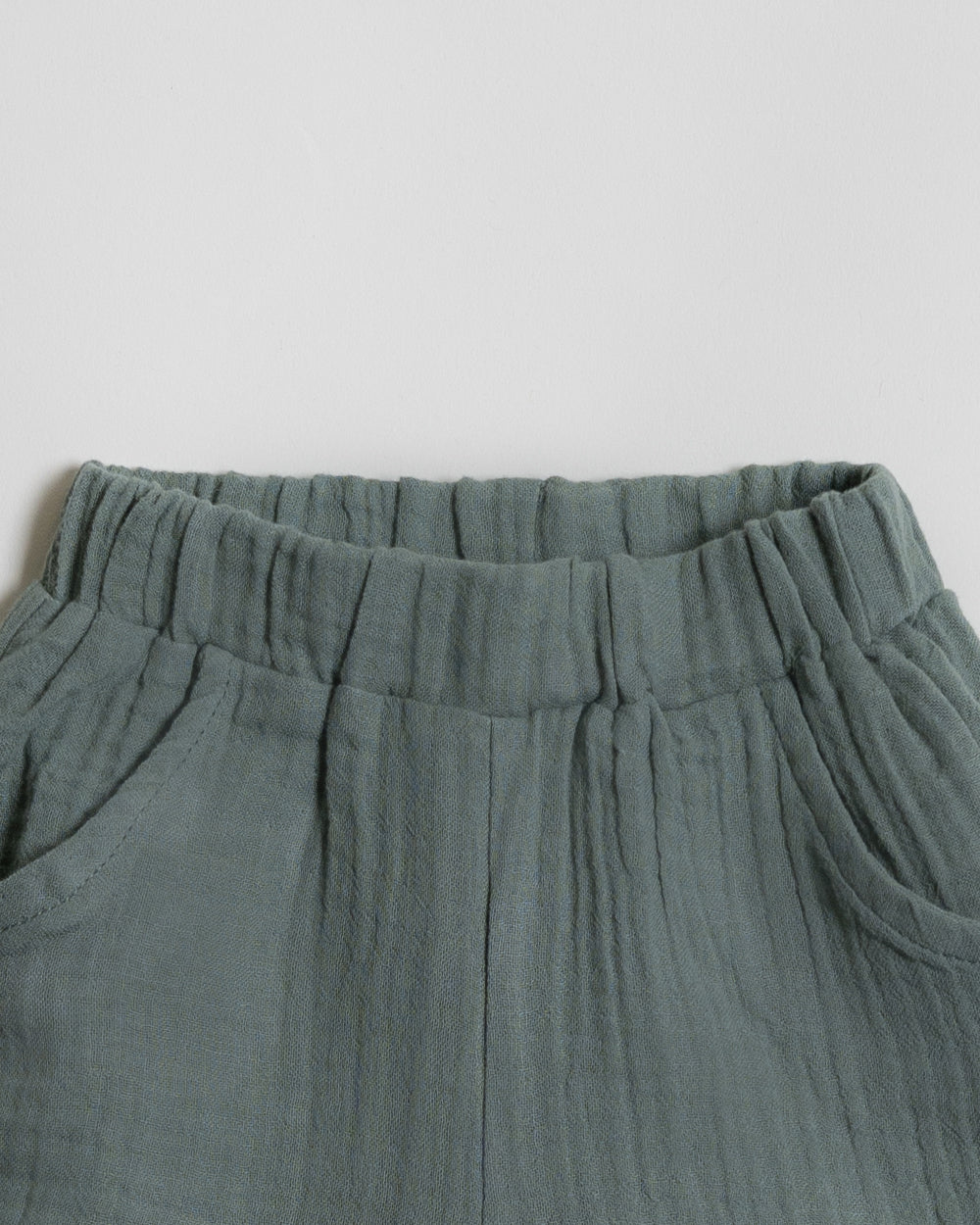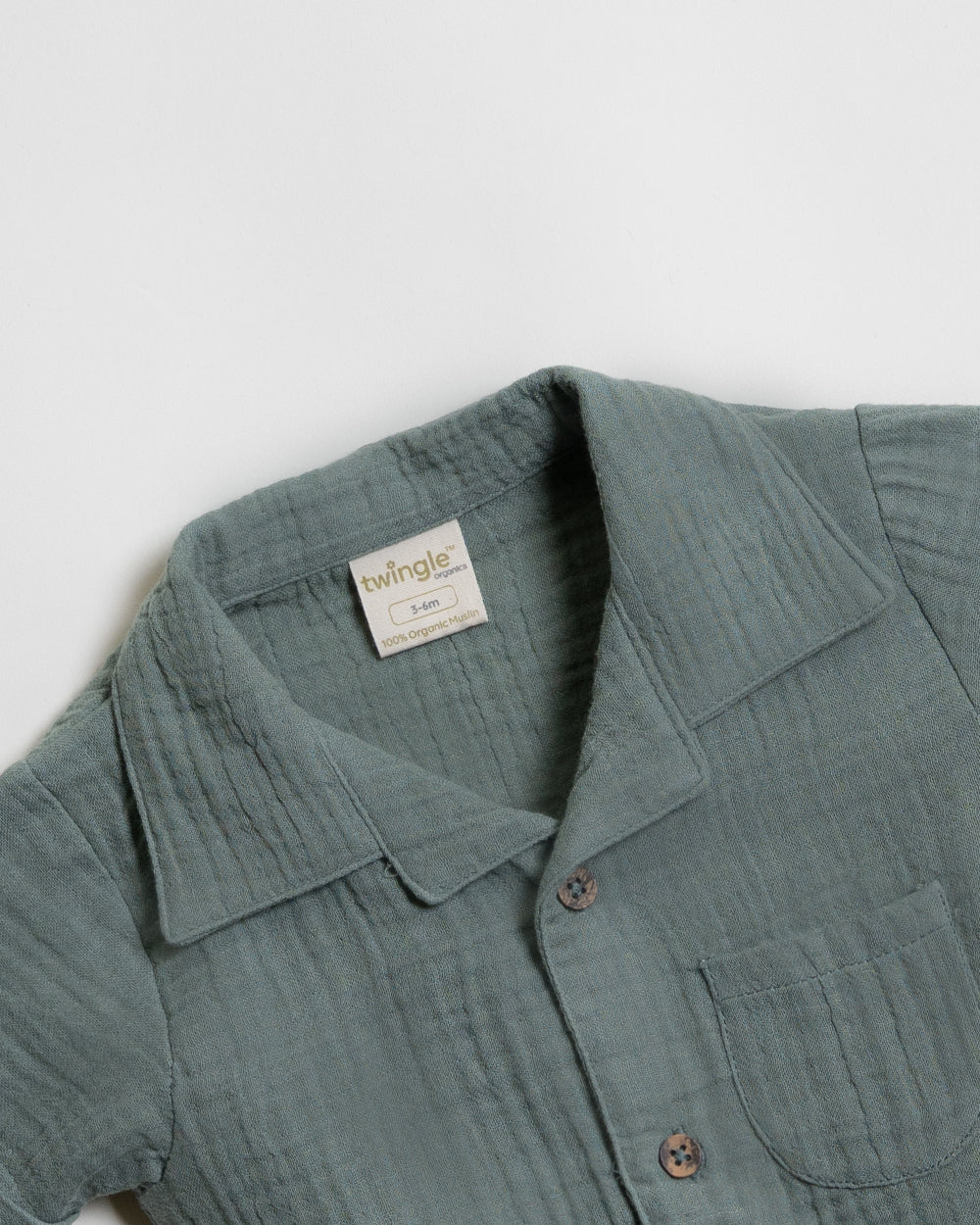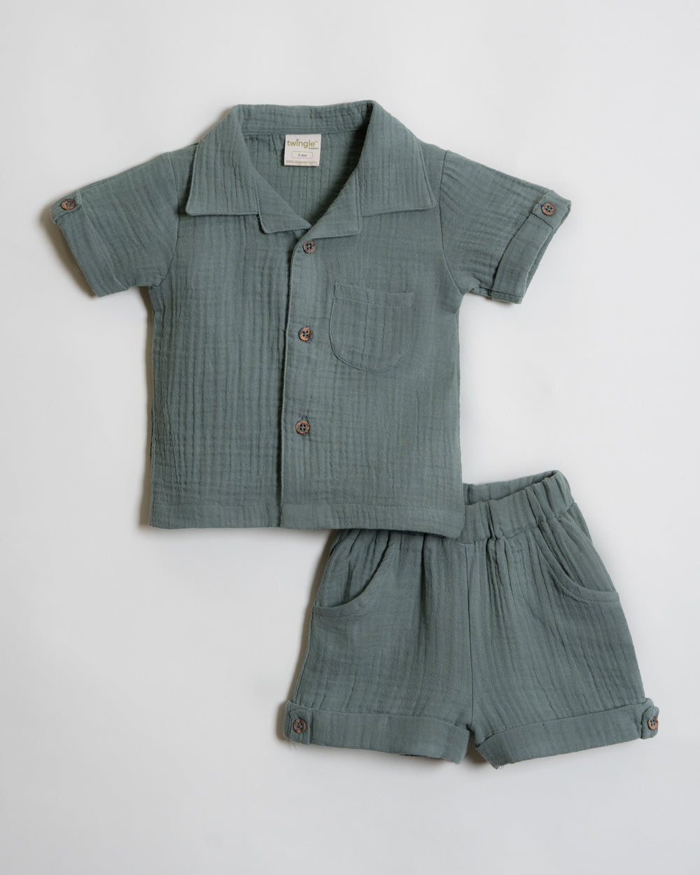Twingle 100% Organic Muslin Shirt & Shorts Set-Functional Pocket-Adjustable Waistband-Sage Green-Solid-For Infants