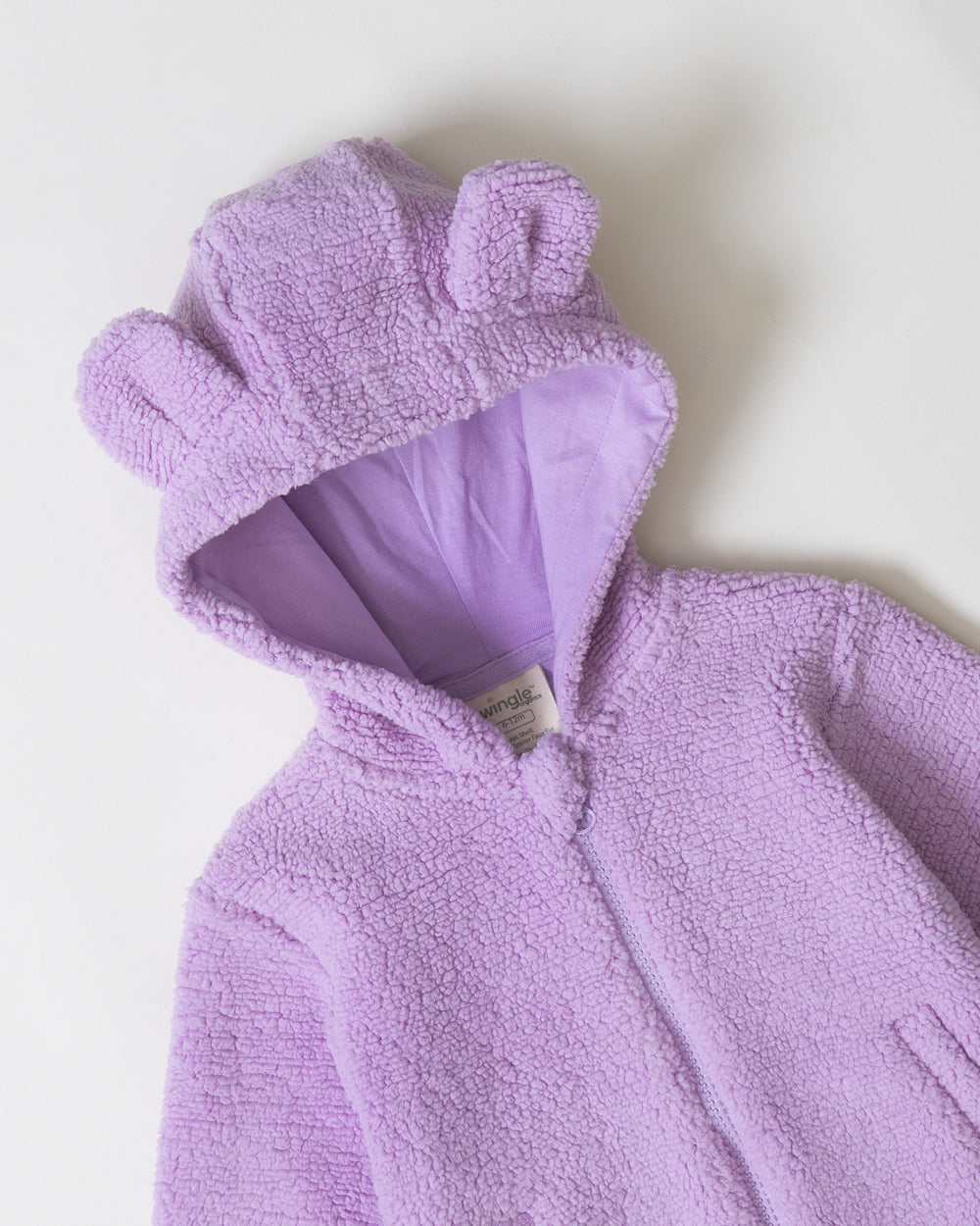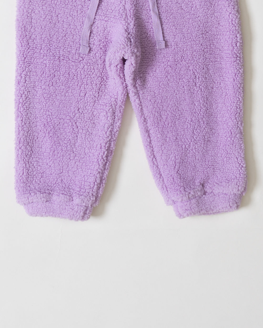 Twingle Faux Fur Winter Wear Hoodie & Jogger Set-100% Cotton Lining-Soft Adjustable Waistband-Long Sleeves-Solid-Lilac-For Infants