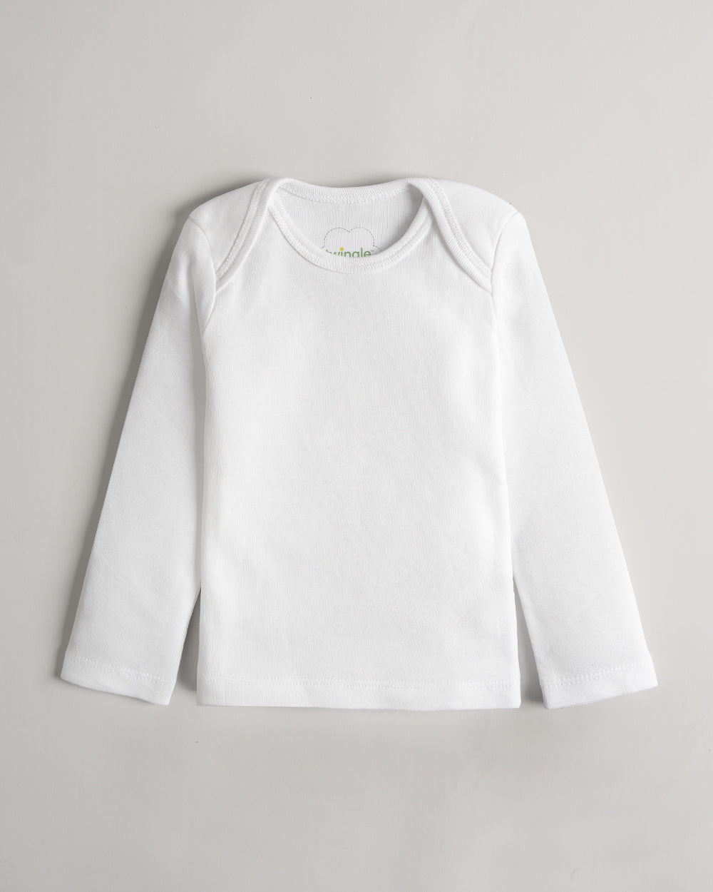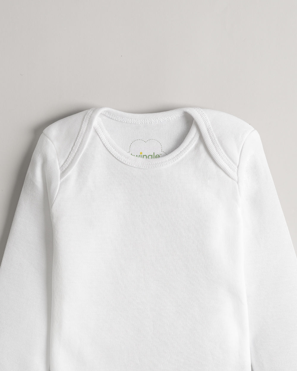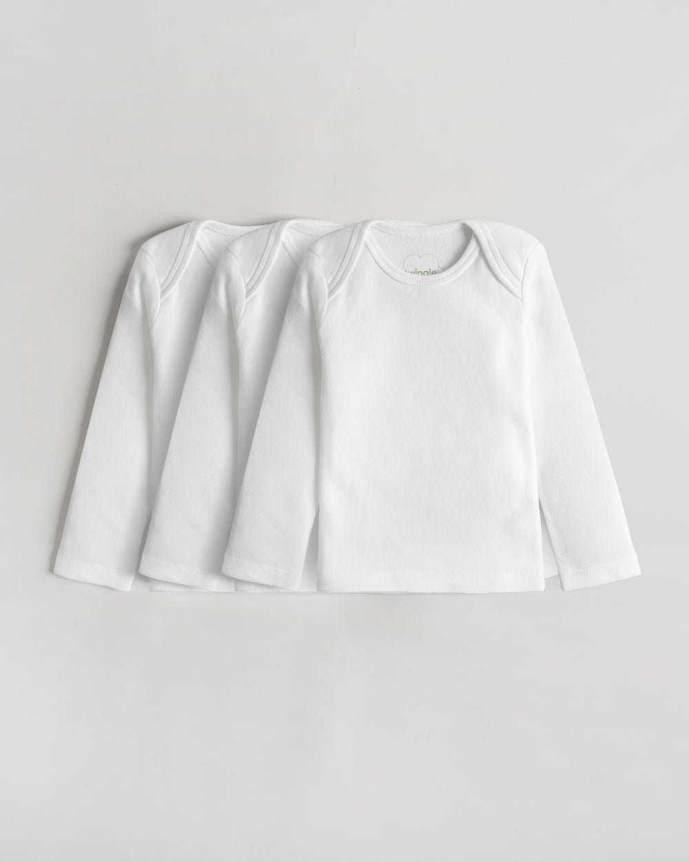 Twingle Snow White Envelope Neck Long Sleeves Vest-Solid-100% Organic Cotton-Pack of 3-For Infants