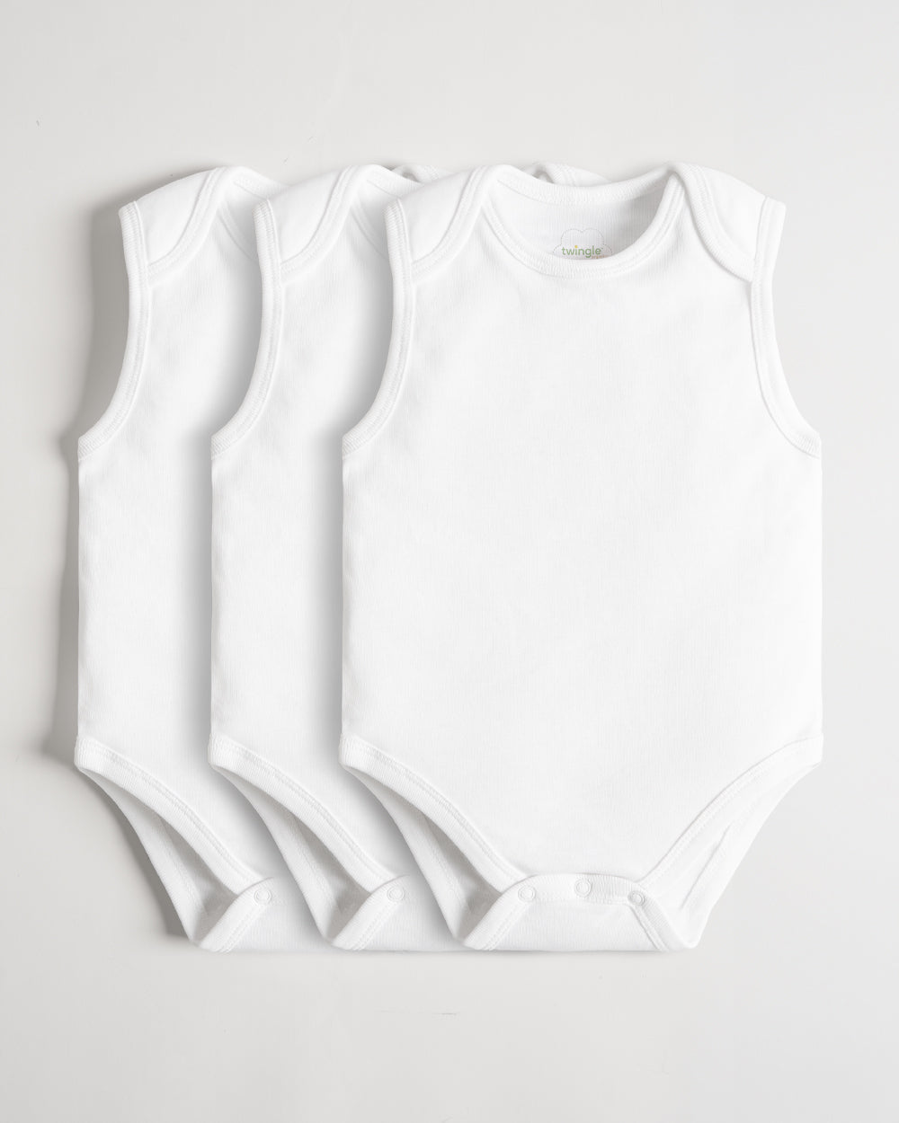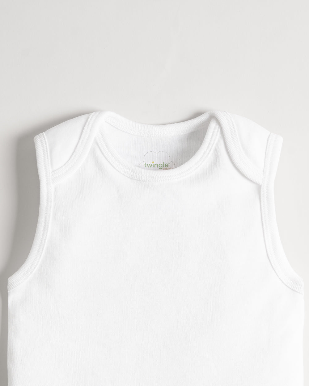 Twingle Snow White Envelope Neck Sleeveless Bodysuit Vest-Solid-100% Organic Cotton-Pack of 3-For Infants