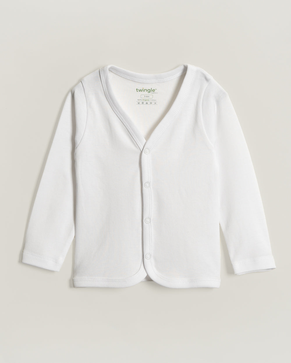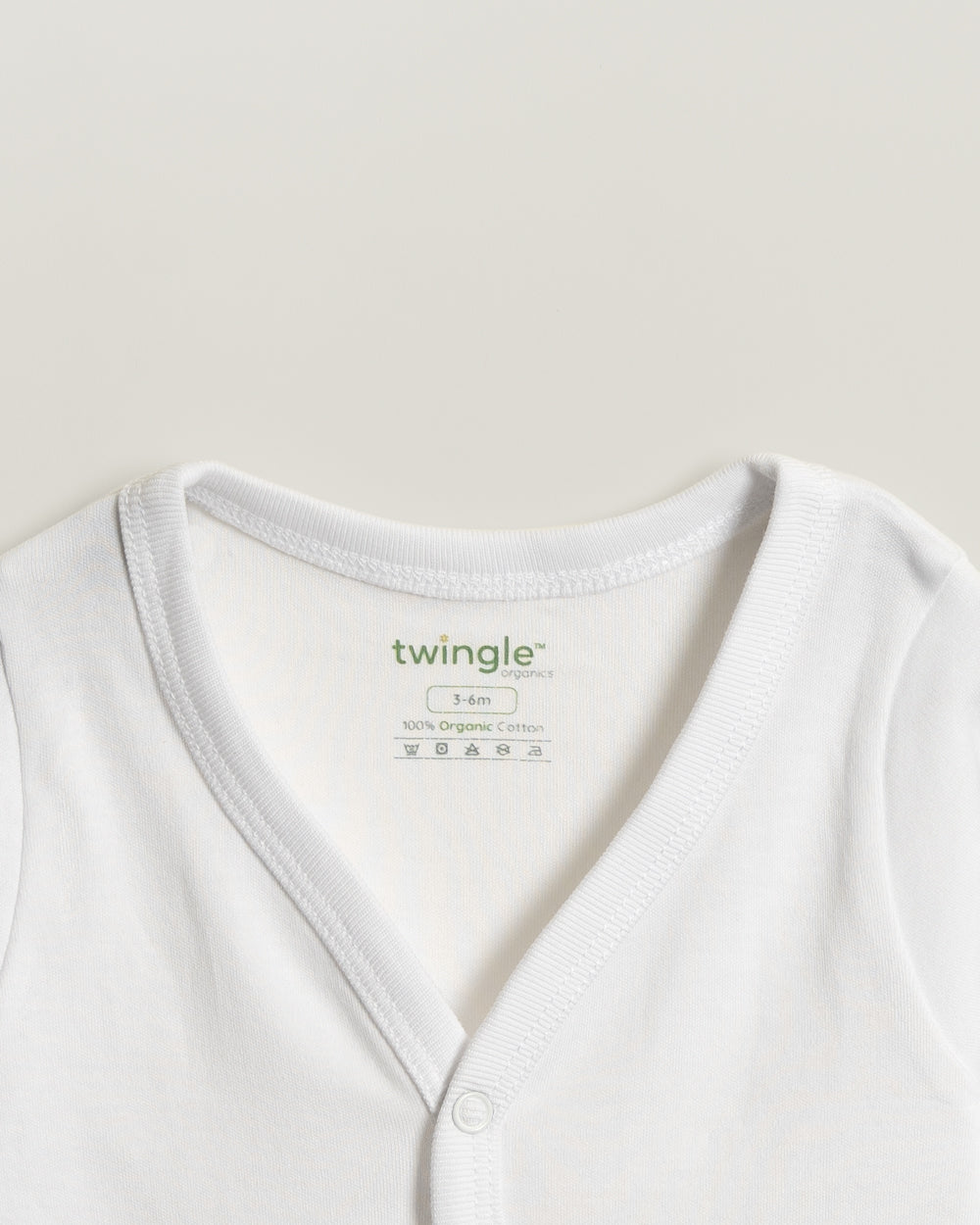Twingle 100% Organic Cotton Jhabla Vest-Front Snaps for Easy Dressing-No Itchy Neck Tags-Long Sleeves-Solid-White-Pack of 3-For Infants