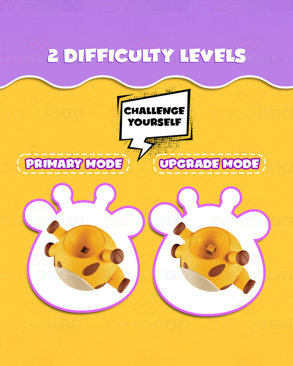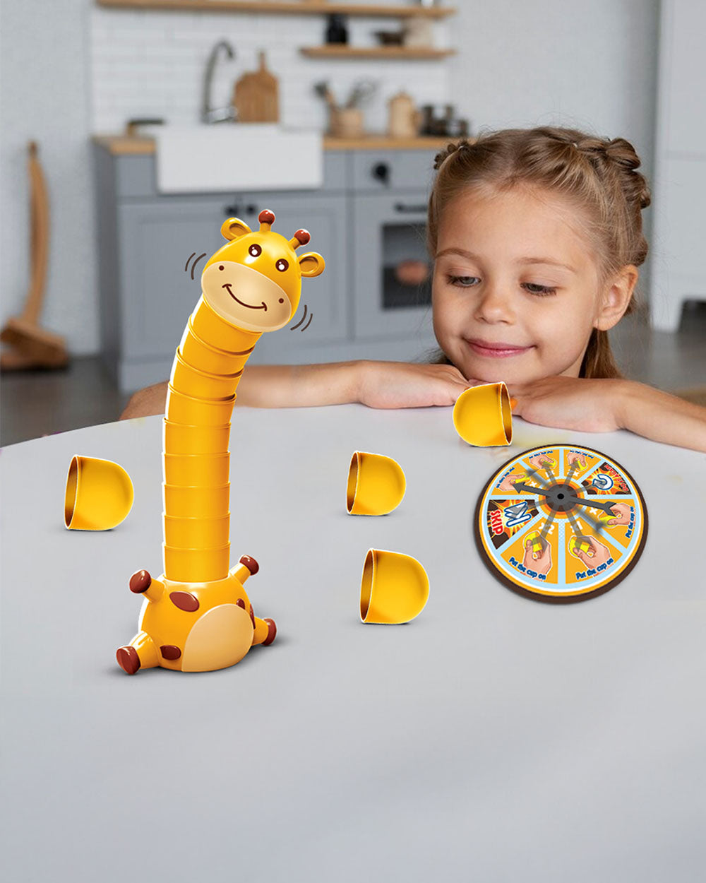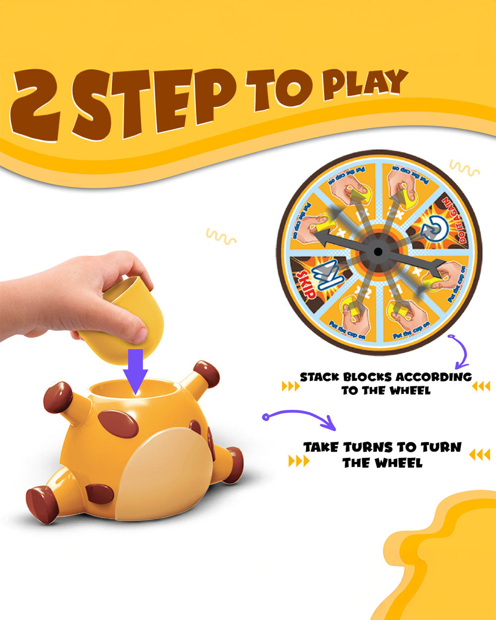 • Interactive Balancing Game: Kids spin the wheel and follow the instructions to stack blocks on the giraffe’s body, testing their patience, balance, and focus.