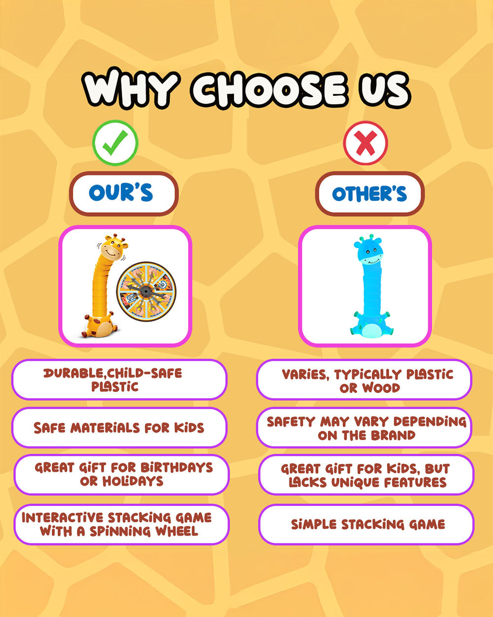 • Educational Fun: While stacking and balancing, kids also develop emotional control, learning patience and how to cope with excitement when the giraffe topples.