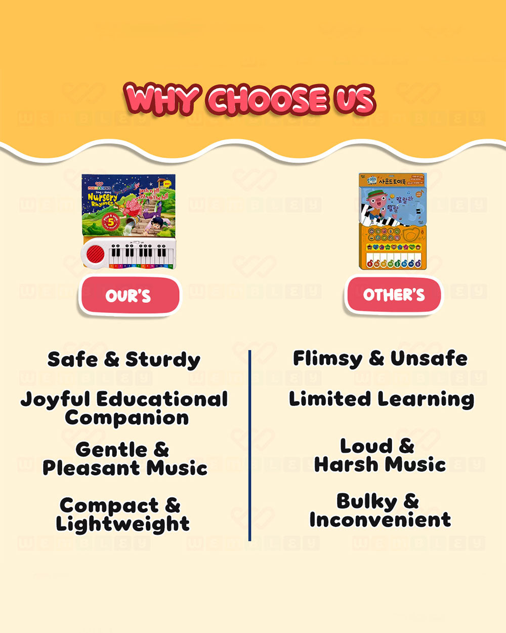 • Sturdy, Child-Friendly Construction: Made with durable materials and rounded edges to withstand enthusiastic play, the piano book is safe for young children and ideal for everyday use.
