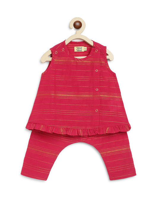 Whitewater Kids Yellow Jhabla Set-Half Sleeves-Printed-Organic Cotton-For Infants