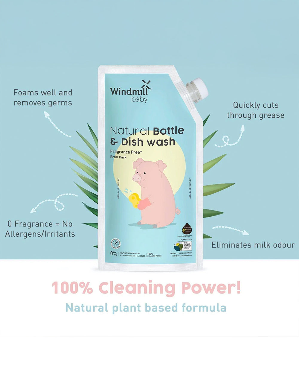 Windmill Baby Natural Bottle And Dish Wash-Infant Safe, USDA Certified-Refill Pack