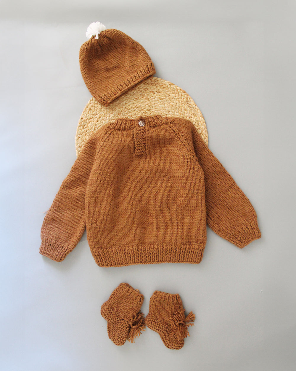 Woonie Brown Sweater With Cap-Embroidered-Acrylic Handmade-For Infants