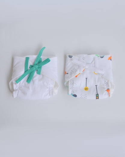 Yellow Doodle Green Hearts Dry Cloth Nappy-100% Premium Organic Cotton-Washable & Reusable-Pack of 2