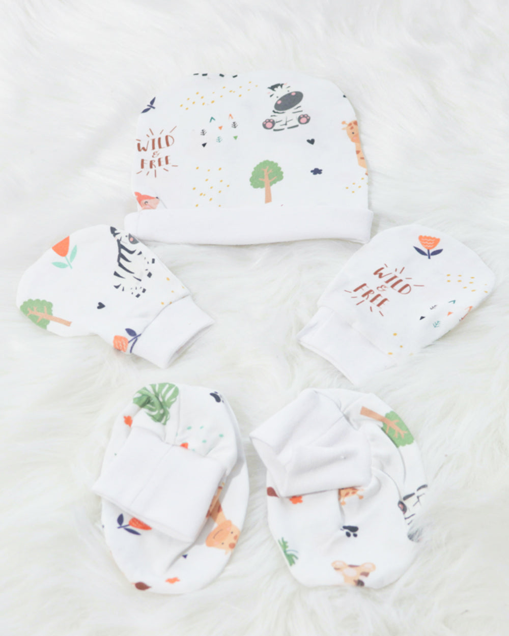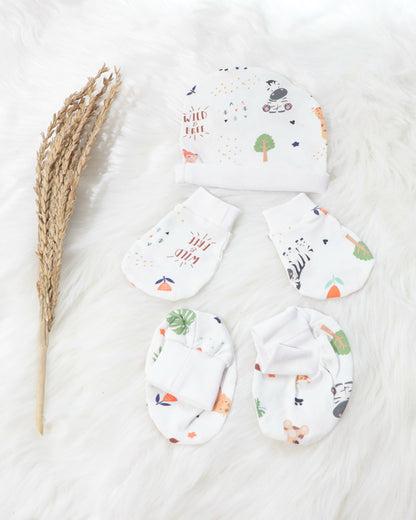 Yellow Doodle White Baby Animal Cap, Mittens & Booties-Cotton-For Infants