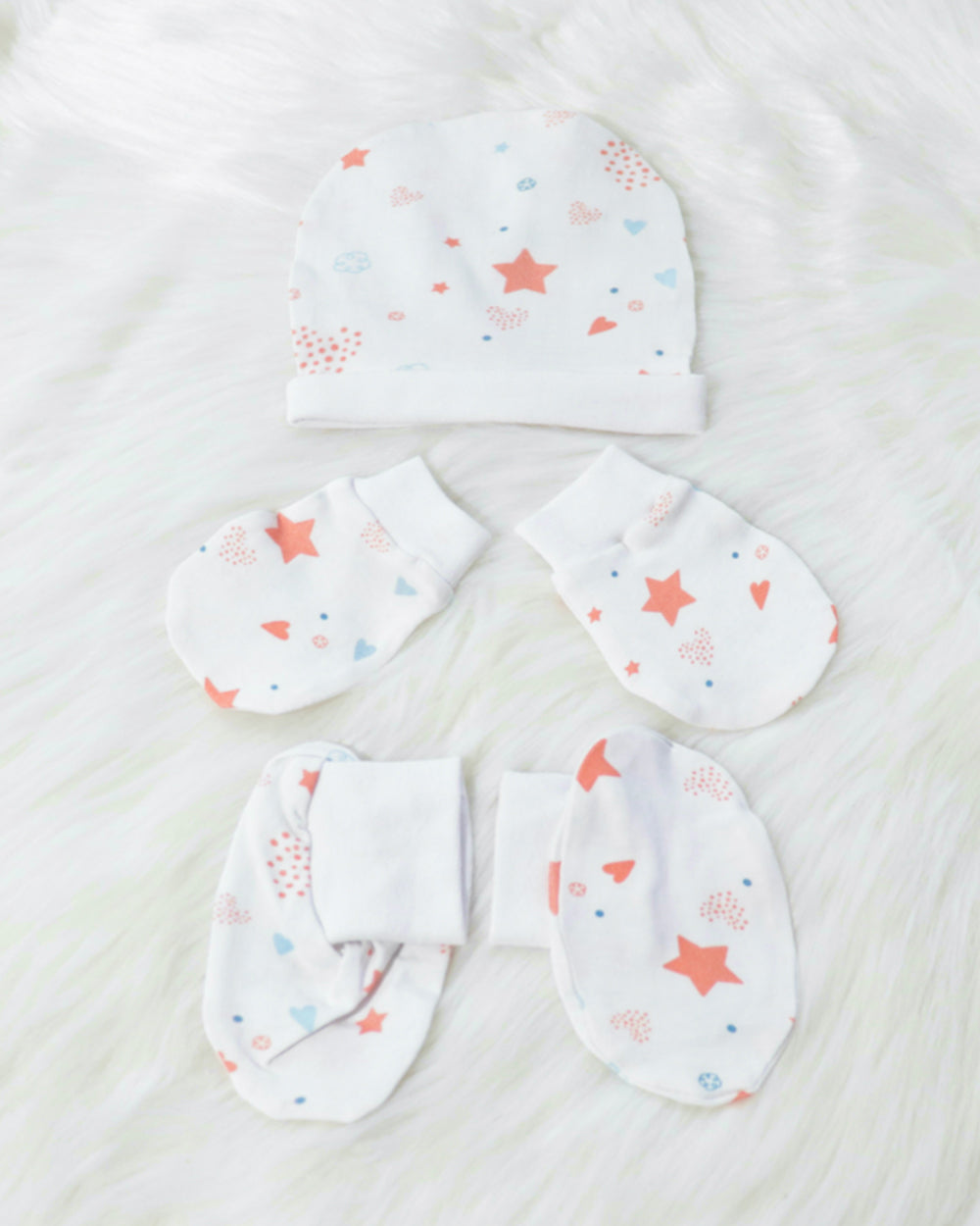 Yellow Doodle White Fairy Dust Cap, Mittens & Booties-Cotton-For Infants